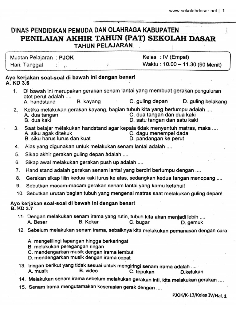 Pendidikan Jasmani, Olahraga, dan Kesehatan (PJOK) merupakan mata pelajaran penting yang bertujuan untuk mengembangkan kemampuan motorik, pengetahuan tentang kesehatan, serta nilai-nilai positif seperti sportivitas dan kerjasama. Ulangan PJOK kelas 4 semester 2 menjadi momen penting untuk mengukur pemahaman siswa terhadap materi yang telah dipelajari selama satu semester. Artikel ini akan memberikan panduan lengkap mengenai persiapan ulangan PJOK kelas 4 semester 2, contoh soal, serta tips untuk meraih nilai terbaik.